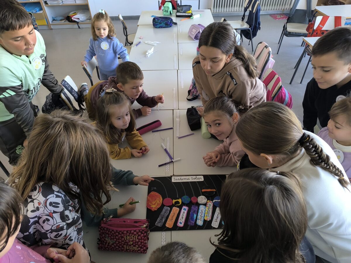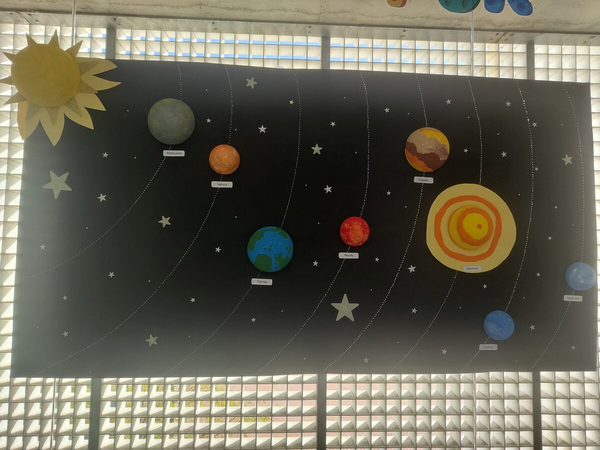Todos los grupos hicieron todas las actividades muy bien. Os dejamos los diferentes sistemas solares para que veáis lo bien que han quedado. Y el grande que hicimos pintando y decorando bolas de poliespan.